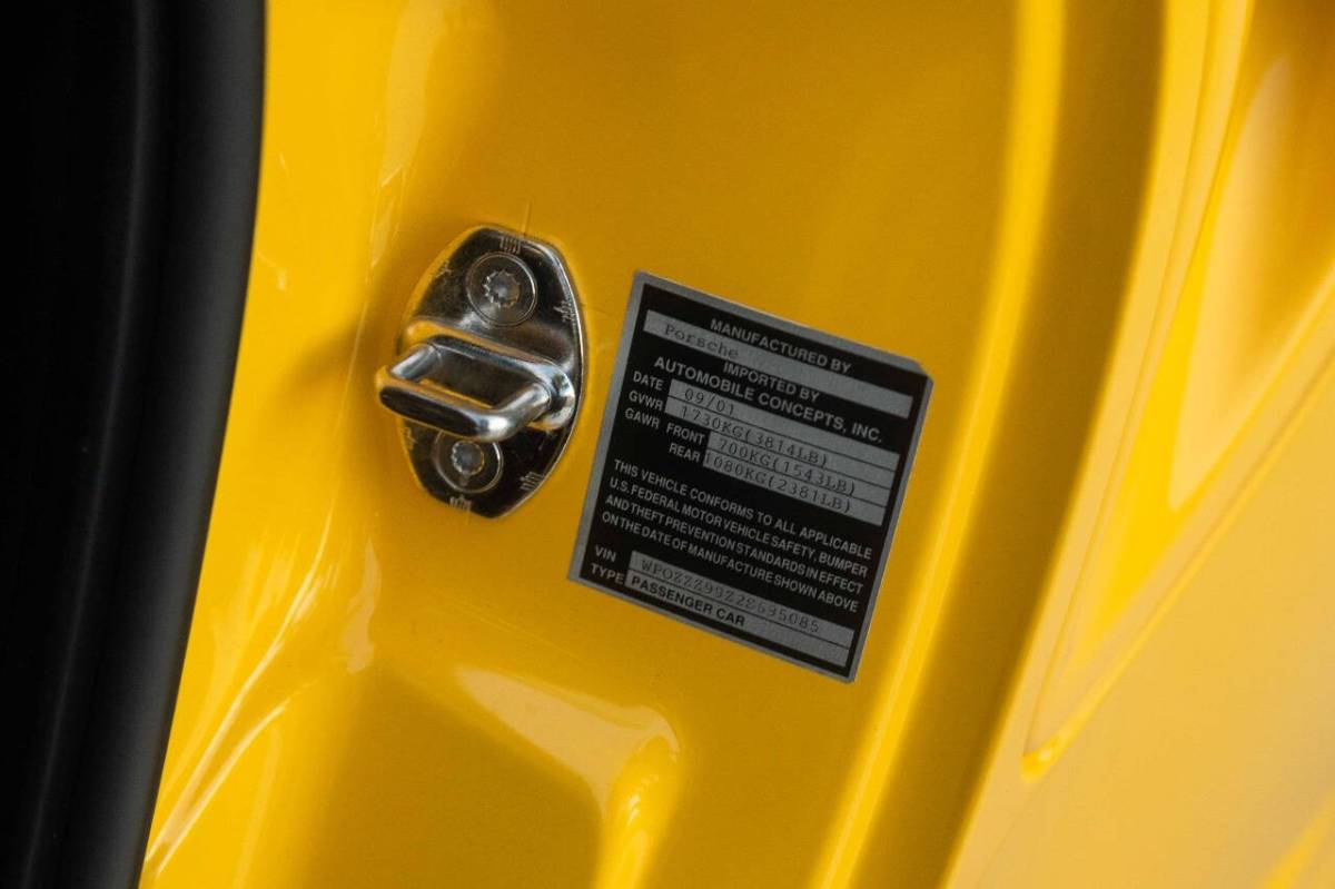 2002 996 GT2 (9k miles) - Euro spec Exterior: Speed Yellow Interior: Black This GT2 was imported into the U.S. in 2002 and subsequently federalized to abide to all federal US laws and EPA emissions requirements. This Euro-market example features leather-upholstered Recaro Clubsport seats as well as an optioned stainless-steel roll bar. Options: 567 Graduated green tint upper part of windshield 581 Front Center Console - GT2 695 CD-RADIO PORSCHE CDR 22 RDW X70 Metal Door Sill Model Insignia XSL Six-Point Safety Bar 220 Limited Slip Differential 424 CD Shelf Center Console XSE Left-side carbon fiber bucket seat XSF Right-side carbon fiber bucket seat