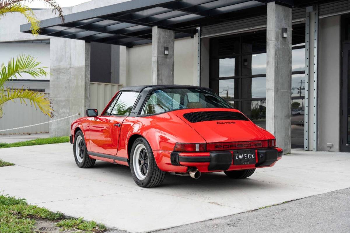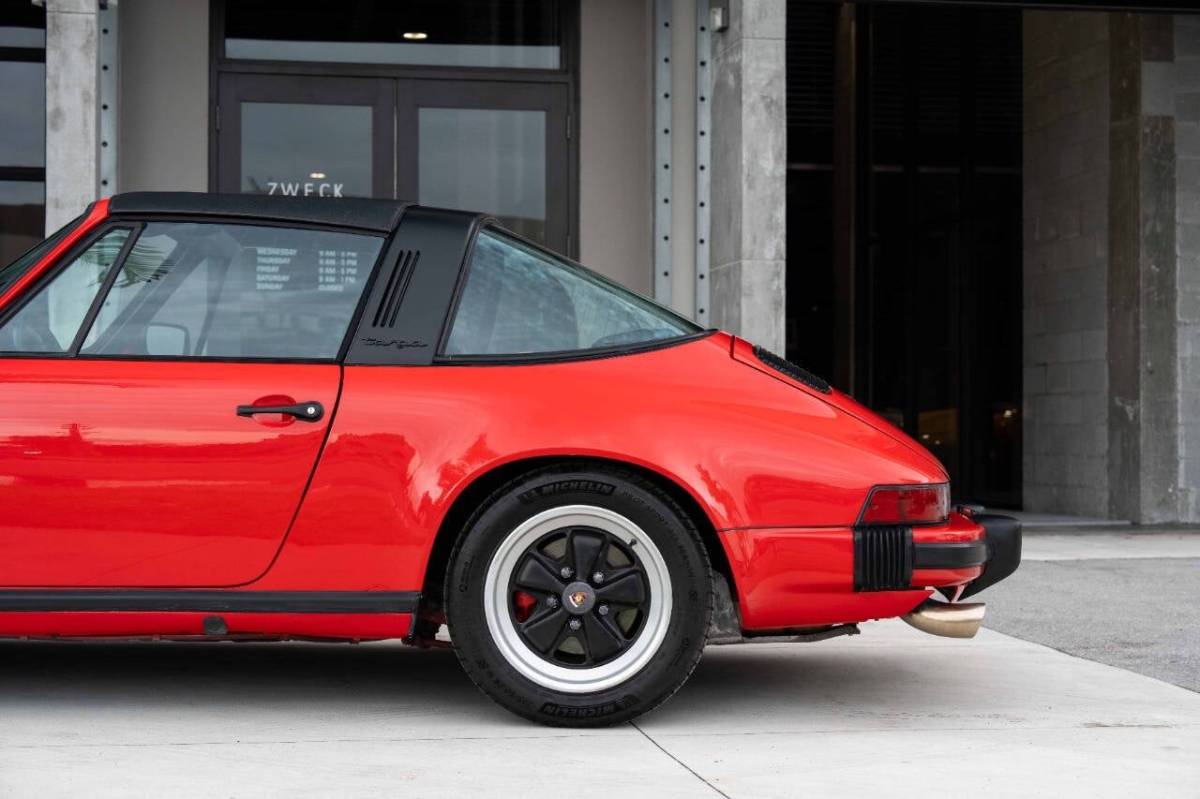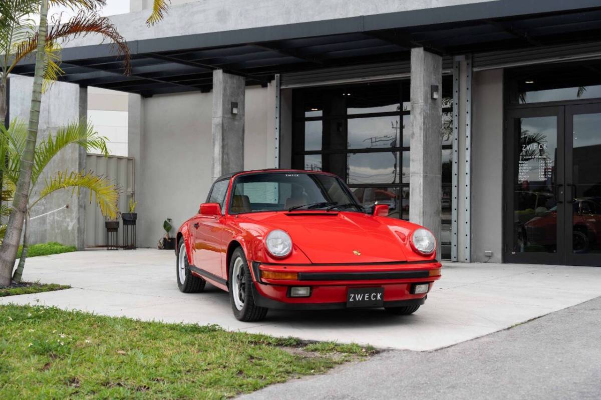 1984 911 Targa (161k miles) - Exterior: Guards Red Interior: Tan This 1984 Porsche 911 Carrera Targa is a well-sorted driver. This G-body example is powered by a rebuilt 3.2L flat-six paired with a 915 5-speed manual transaxle. Riding on 16-inch Fuchs wheels, it is further equipped with a Rennline strut tower brace, fog lights, Blaupunkt Malibu cassette stereo, and a Wevo short shifter. In March 2022, the car underwent a comprehensive mechanical refresh at Stahl Motorsports in West Palm Beach, including valve and timing adjustments along with extensive clutch, ignition, fuel, sealing, and drivetrain service, as well as additional work to the steering, brakes, suspension, and interior. Further upgrades include Supertec head studs, 28-pin DME, and a Steve Wong ECU chip, giving this Carrera Targa a strong combination of recent service, worthwhile driver-focused improvements, and classic air-cooled character. Factory Options & Equipment: 158 Standard Radio 395 Forged Alloy Wheels 454 Cruise Control 474 Sport Shock Absorbers 533 Alarm System 020 DUAL SCALE INSTRUMENTS 185 3-PT. FR. SEAT BELT 2-PT. RE. 190 WITH STRONGER DOORS 197 MORE POWERFUL BATTERY 218 NUMBER PLATE HOLDER FR. & RE. 464 WITHOUT COMPRESSOR + TYRE-PRESSURE GAUGE 484 SYMB. + LABELLING F.SWITCH.+INSTR. 567 GREEN-TINTED WINDSCREEN W. GREEN TOP-TINT 576 W/O REAR FOG LIGHT 912 W/O IDENTIFICATION PLATE